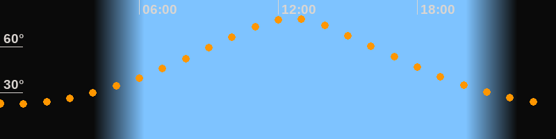 | Höchster Stand (Kulmination) | 12:34 Uhr (h = 78,5°) |