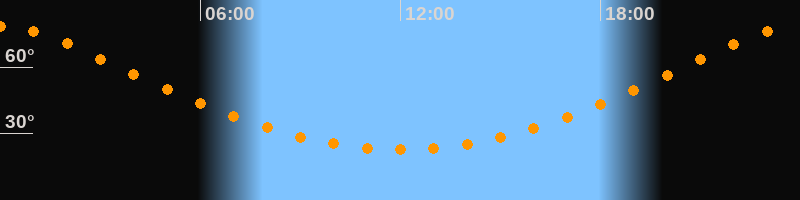 | Höchster Stand (Kulmination) | 23:59 Uhr (h = 78,5°) |