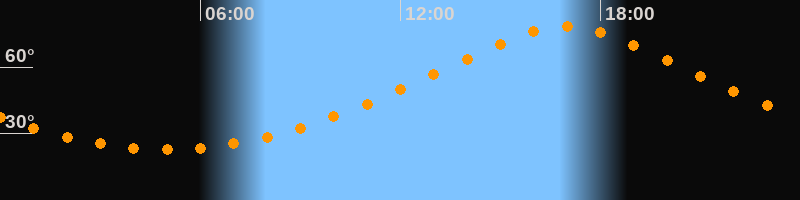 | Höchster Stand (Kulmination) | 16:57 Uhr (h = 78,5°) |