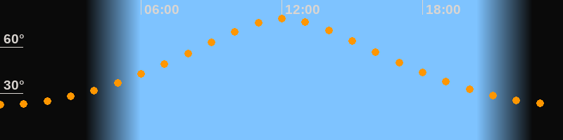 | Höchster Stand (Kulmination) | 12:03 Uhr (h = 78,5°) |