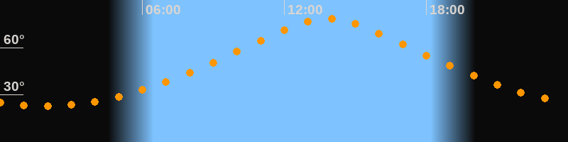 | Höchster Stand (Kulmination) | 13:49 Uhr (h = 78,5°) |