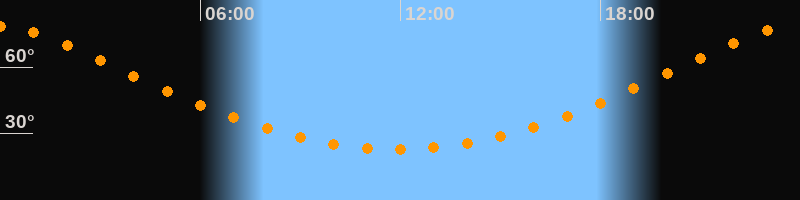 Höchster Stand (Kulmination)23:53 Uhr (h = 78,5°)