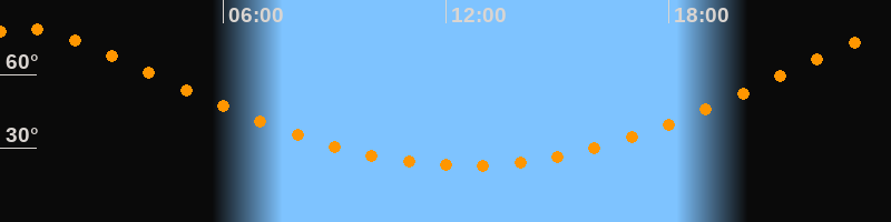 | Höchster Stand (Kulmination) | 00:33 Uhr (h = 78,5°) |