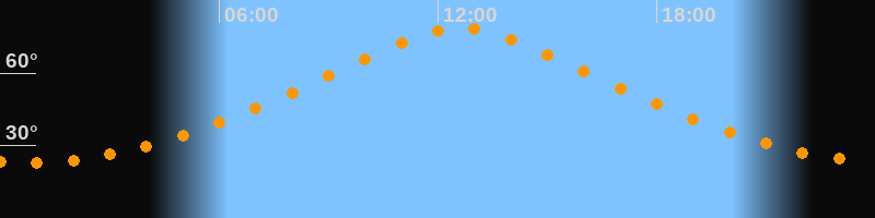 | Höchster Stand (Kulmination) | 12:38 Uhr (h = 78,5°) |