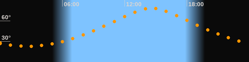 | Höchster Stand (Kulmination) | 14:36 Uhr (h = 78,5°) |