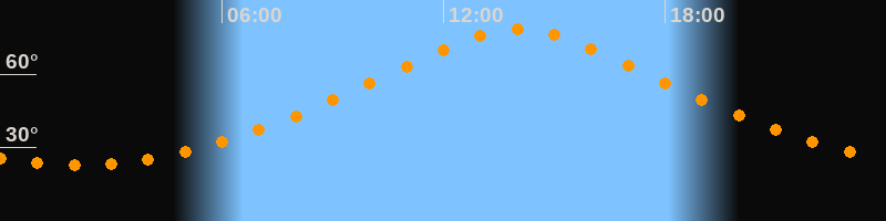 | Höchster Stand (Kulmination) | 14:01 Uhr (h = 78,5°) |