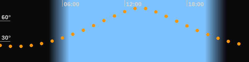 | Höchster Stand (Kulmination) | 13:27 Uhr (h = 78,5°) |