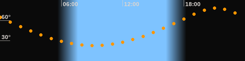 | Höchster Stand (Kulmination) | 21:08 Uhr (h = 78,5°) |