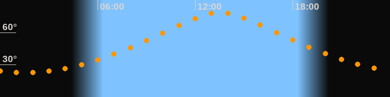 | Höchster Stand (Kulmination) | 13:32 Uhr (h = 78,5°) |