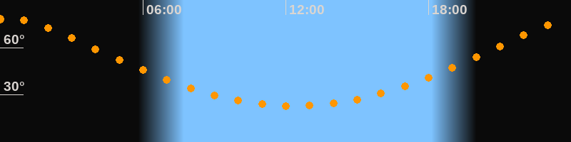 | Höchster Stand (Kulmination) | 00:20 Uhr (h = 78,5°) |