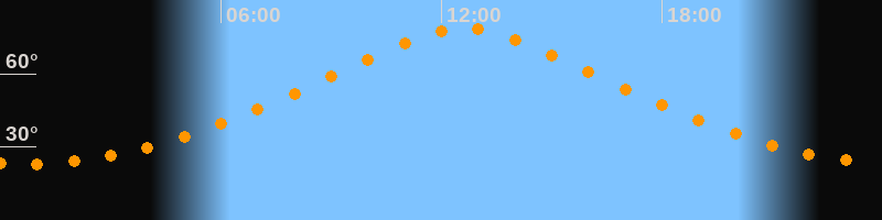 | Höchster Stand (Kulmination) | 12:37 Uhr (h = 78,5°) |