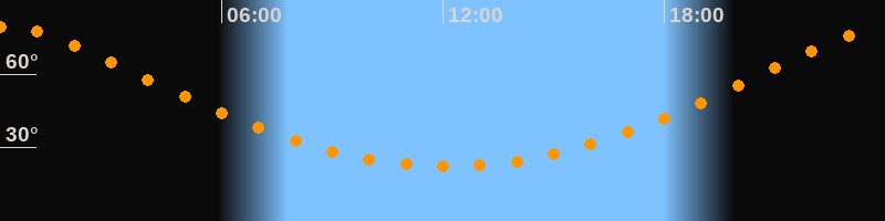 | Höchster Stand (Kulmination) | 00:08 Uhr (h = 79,1°) |