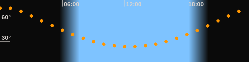 | Höchster Stand (Kulmination) | 00:28 Uhr (h = 79,1°) |