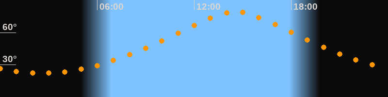 | Höchster Stand (Kulmination) | 14:33 Uhr (h = 79,1°) |