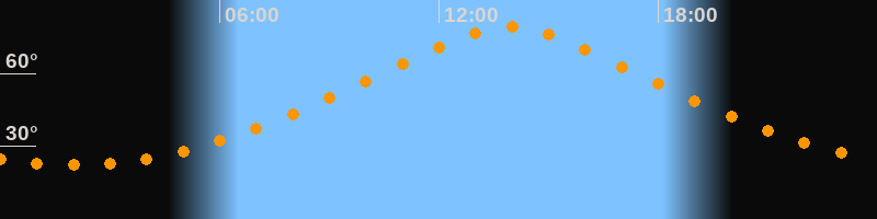 | Höchster Stand (Kulmination) | 13:55 Uhr (h = 79,1°) |