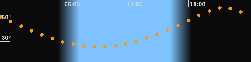 | Höchster Stand (Kulmination) | 21:21 Uhr (h = 79,1°) |