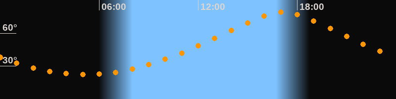 | Höchster Stand (Kulmination) | 17:07 Uhr (h = 79,1°) |