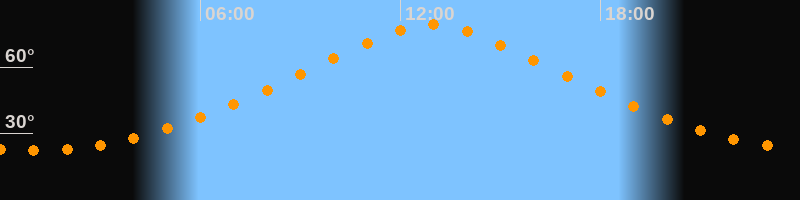 | Höchster Stand (Kulmination) | 12:56 Uhr (h = 79,1°) |