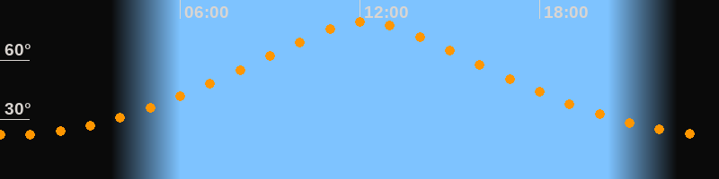 | Höchster Stand (Kulmination) | 12:11 Uhr (h = 79,1°) |