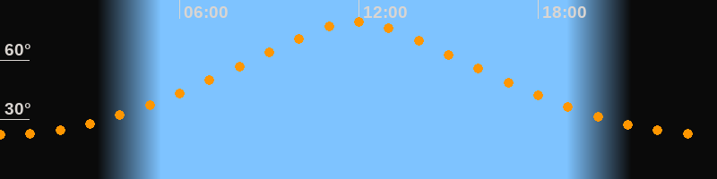 | Höchster Stand (Kulmination) | 11:55 Uhr (h = 79,1°) |