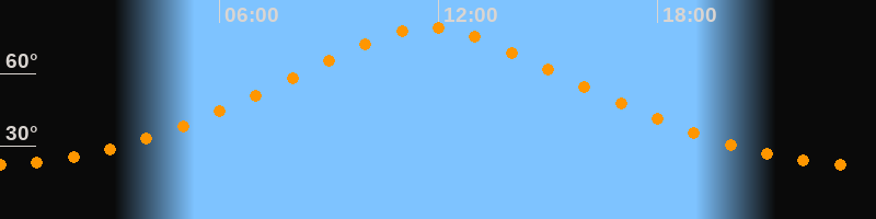 | Höchster Stand (Kulmination) | 11:44 Uhr (h = 79,1°) |