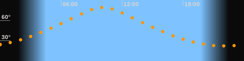 | Höchster Stand (Kulmination) | 10:06 Uhr (h = 79,1°) |