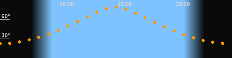| Höchster Stand (Kulmination) | 11:54 Uhr (h = 79,1°) |