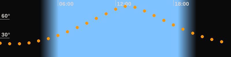 | Höchster Stand (Kulmination) | 13:18 Uhr (h = 80,6°) |