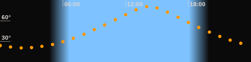 | Höchster Stand (Kulmination) | 14:14 Uhr (h = 80,6°) |