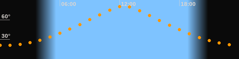 | Höchster Stand (Kulmination) | 12:25 Uhr (h = 80,6°) |