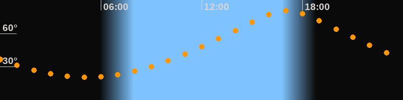 | Höchster Stand (Kulmination) | 17:05 Uhr (h = 80,6°) |