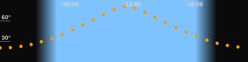 | Höchster Stand (Kulmination) | 12:14 Uhr (h = 80,6°) |