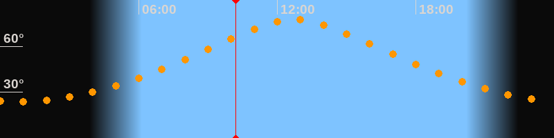 | Höchster Stand (Kulmination) | 12:45 Uhr (h = 77,4°) |
