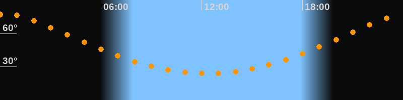 | Höchster Stand (Kulmination) | 00:16 Uhr (h = 77,4°) |