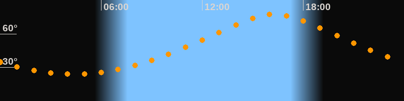 | Höchster Stand (Kulmination) | 16:18 Uhr (h = 77,4°) |