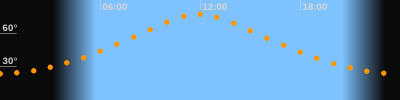 | Höchster Stand (Kulmination) | 11:55 Uhr (h = 77,4°) |