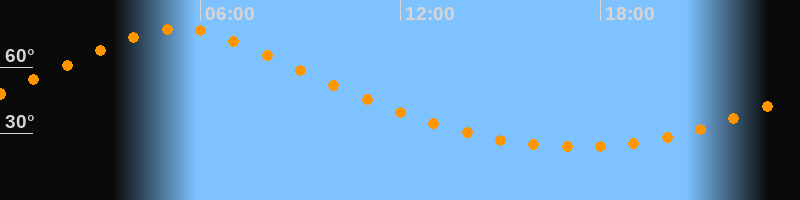 | Höchster Stand (Kulmination) | 05:19 Uhr (h = 77,4°) |