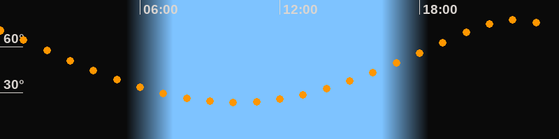 | Höchster Stand (Kulmination) | 22:04 Uhr (h = 77,4°) |