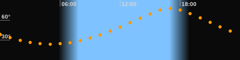 | Höchster Stand (Kulmination) | 17:01 Uhr (h = 77,4°) |