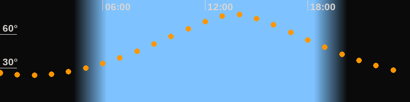 | Höchster Stand (Kulmination) | 13:46 Uhr (h = 77,4°) |