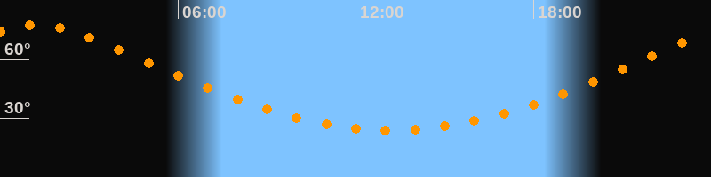 | Höchster Stand (Kulmination) | 01:12 Uhr (h = 77,4°) |