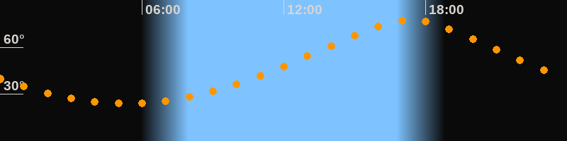 | Höchster Stand (Kulmination) | 17:19 Uhr (h = 77,4°) |