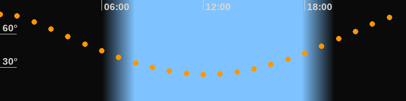 | Höchster Stand (Kulmination) | 00:07 Uhr (h = 77,4°) |