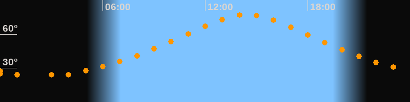 | Höchster Stand (Kulmination) | 14:26 Uhr (h = 77,4°) |