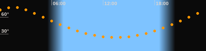 | Höchster Stand (Kulmination) | 01:28 Uhr (h = 77,4°) |