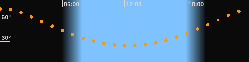 | Höchster Stand (Kulmination) | 00:17 Uhr (h = 77,4°) |