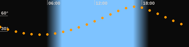 | Höchster Stand (Kulmination) | 17:04 Uhr (h = 77,4°) |