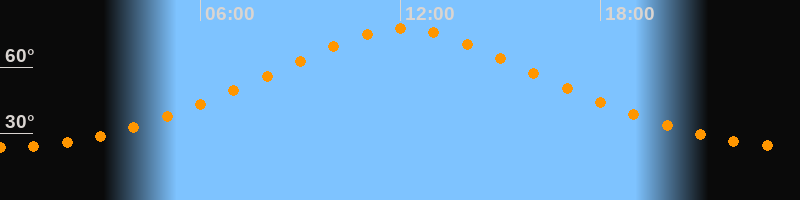 | Höchster Stand (Kulmination) | 12:04 Uhr (h = 77,4°) |