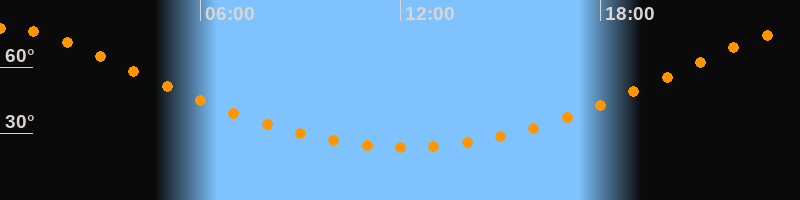 | Höchster Stand (Kulmination) | 00:09 Uhr (h = 77,4°) |