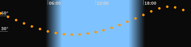 | Höchster Stand (Kulmination) | 21:12 Uhr (h = 77,4°) |